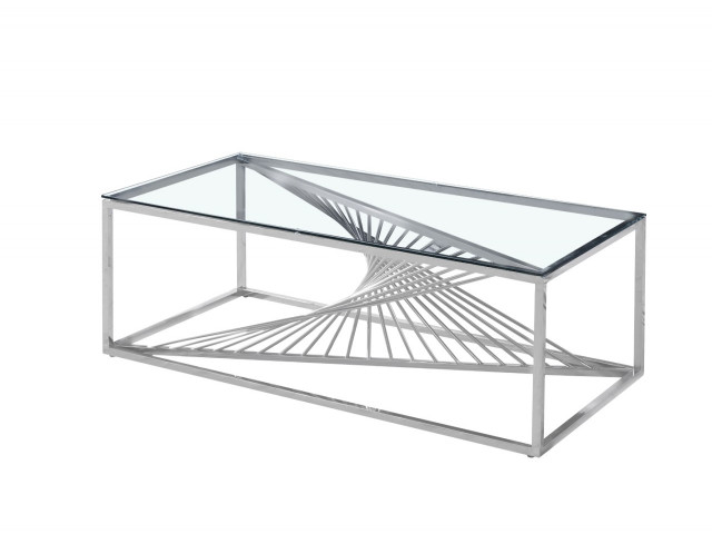 IF 2673 Coffee Table $ 250.00 $ 250.00 High Gloss White Legs With Stainless Steel Base and Tempered Glass Top Also available in Black